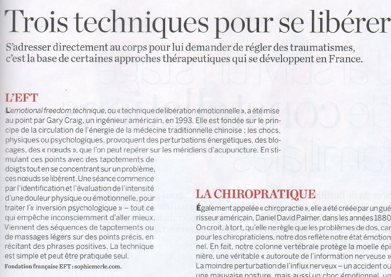 L’EFT est une technique de psychologie énergétique très efficace. Elle permet de se débarrasser de vieilles phobies, de deuils pas ou mal effectués et de traumatismes ancrés depuis longtemps, rapidement et facilement !!!