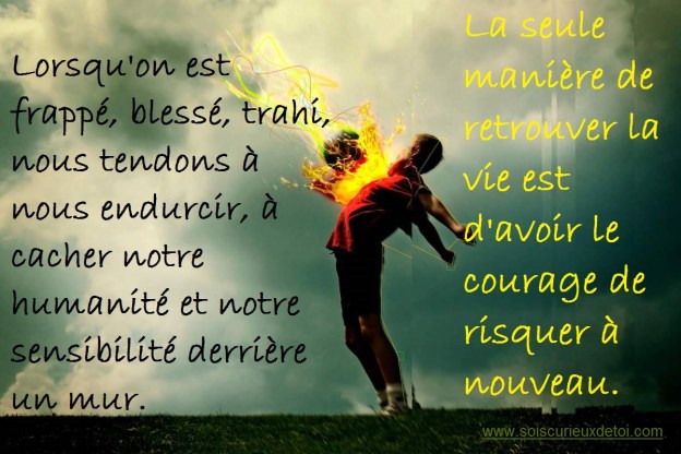 La seule manière de retrouver la vie est d’avoir le courage de risquer à nouveau. Avoir la force de se montrer tel qu’on est auprès des bonnes personnes.